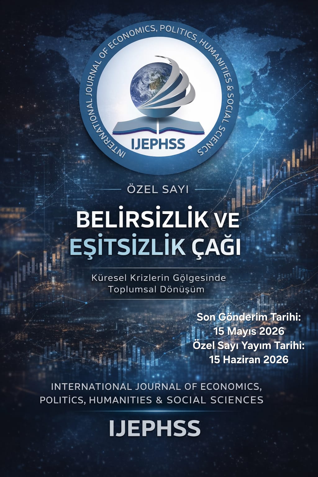International Journal of Economics, Politics, Humanities & Social Sciences – IJEPHSS (e-ISSN: 2636-8137), Ocak, Nisan, Temmuz ve Ekim aylarında olmak üzere yılda dört defa yayımlanan, uluslararası, çift taraflı kör hakemlik sistemini benimsemiş, açık erişimli, bilimsel ve akademik bir dergidir. IJEPHSS, araştırma ve yayın etiğini önemsemektedir ve etik kurallara uygun şekilde çalışmalara yer vermektedir.